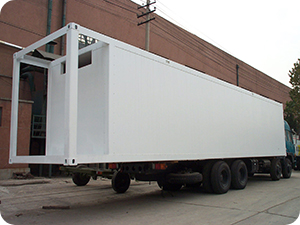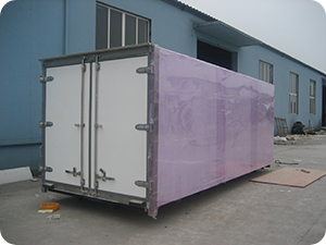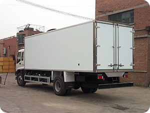 Our refrigerated truck body is all-closed panel structure. The free-Freon molding PU foam is used as the insulated sandwich material, the high polymer compound material as the internal and external covering sheet, which are molded one-off in the pressure machine.